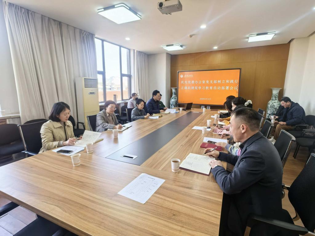 3月12日,机关党委办公室党支部召开树立和践行正确政绩观学习教育启动部署会议,全面启动支部学习教育工作。党委书记王晓娟以普通党员身份参加会议,会议由支部临时负责人郑楠主持,支部全体党员参加。